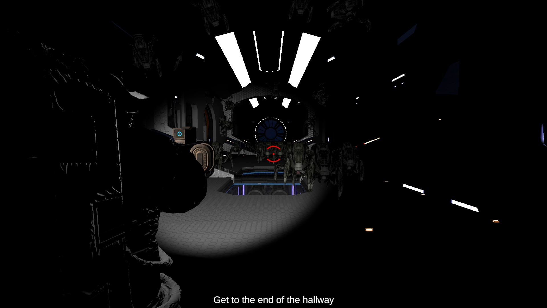 A short, over-the-shoulder third-person shooter where you fight your way down a hallway by blasting robot bugs and listening to music.